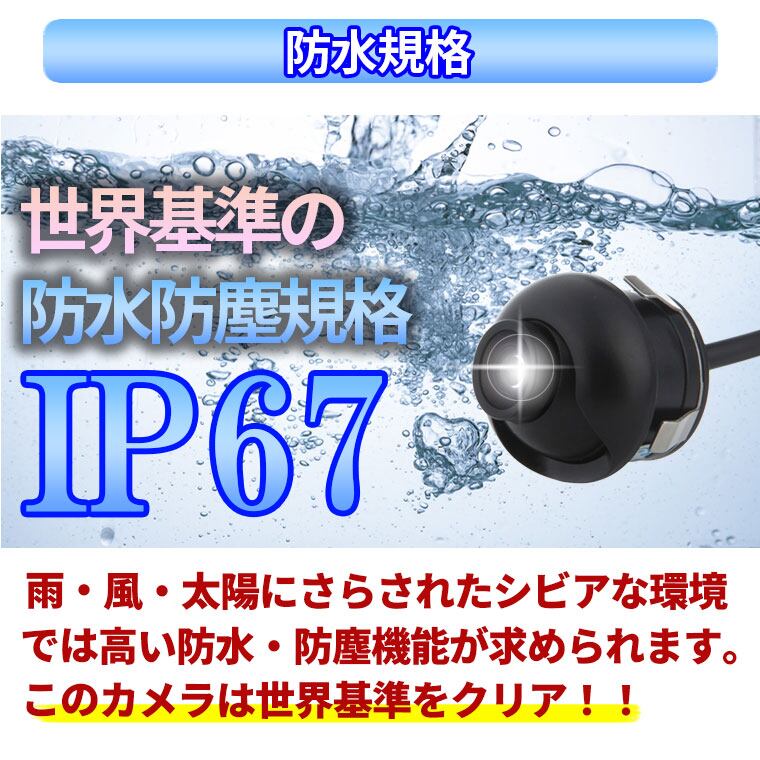 バックカメラ 車載カメラ 36万画素 防水IP68 CCD フロント リヤ 埋込型 水平150° 垂直90°防水IP67 後付け ナンバープレート 正像・鏡像切替 ガイドライン有無 DC12V電源 一年保証 送料無料 日本語説明書
