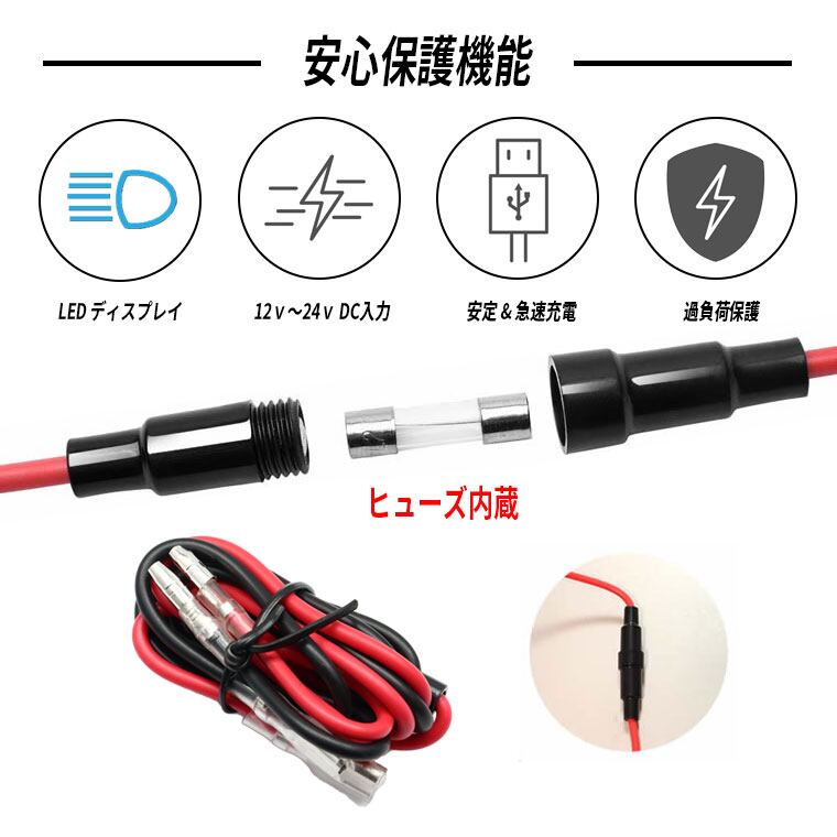 インプットパワー:DC 12V-24V USBアウトプットパワー:DC 5V 2.1A QC3.0急速USB充電器+タイプC PD3.0の2口 トヨタ車Bタイプに適合。500mm配線ハーネス付き。