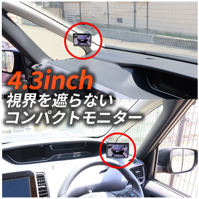 バックカメラ バックモニター サイドカメラ フロントカメラ モニターセット 4.3インチ 液晶モニター ケーブル一本 配線 シガーソケット給電 取り付け超簡単 オンダッシュ 駐車支援 12V 24V対応 1年保証 日本語説明書 送料無料