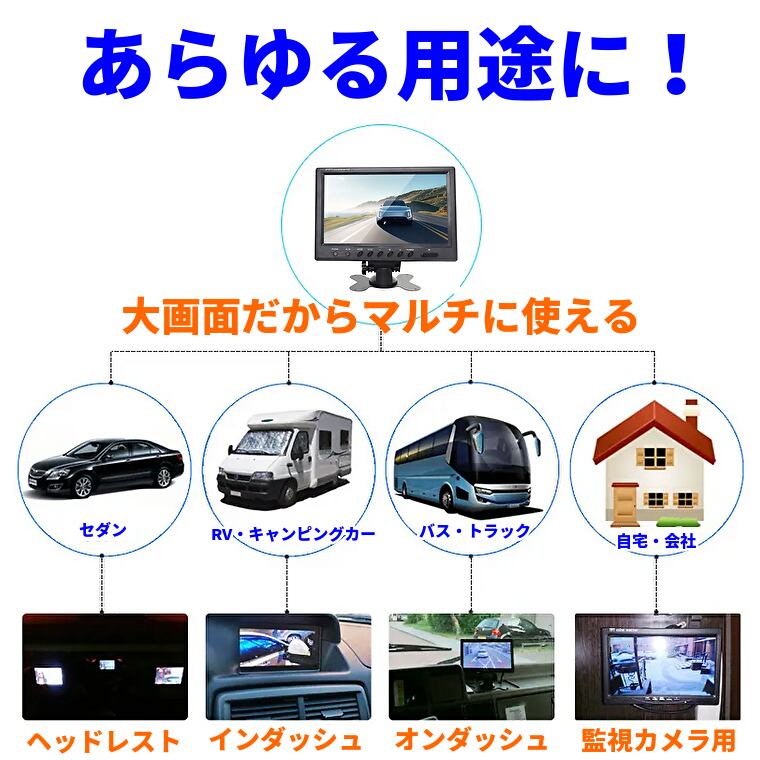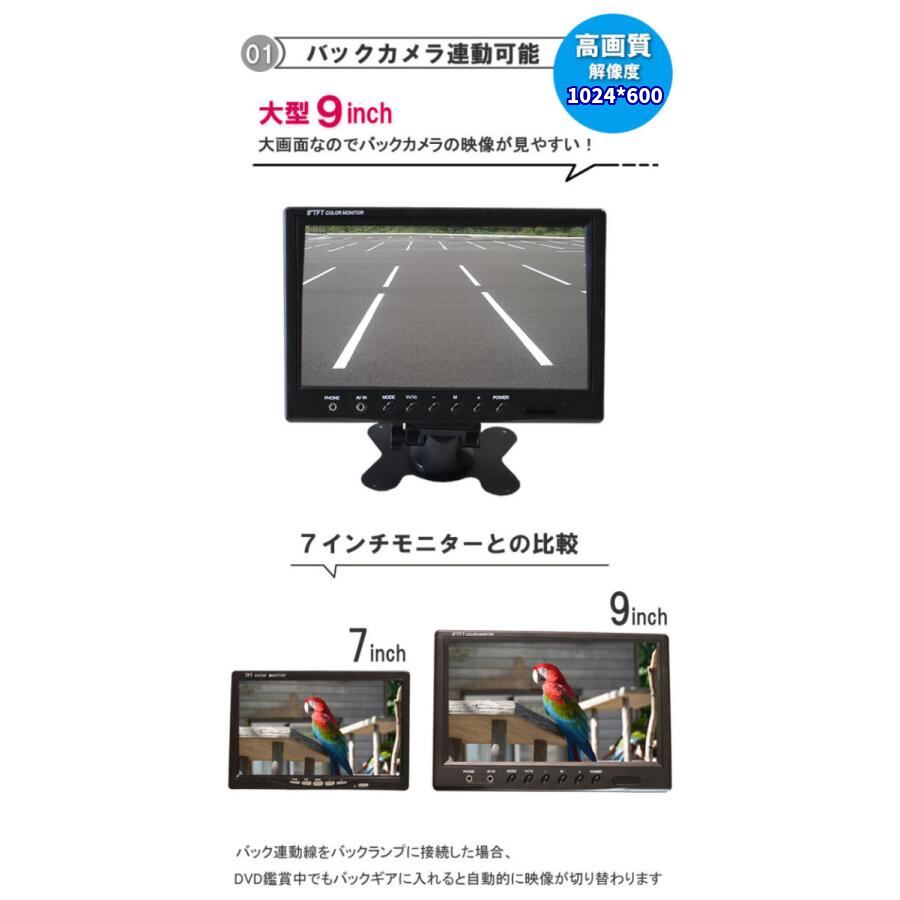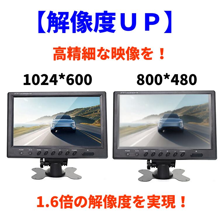 オンダッシュモニター 9インチ リアモニター フロントモニター 1024*600 12V/24V対応 リモコン切替可能 映像2系統 電源直結式 送料無料 1年保証 日本語説明書