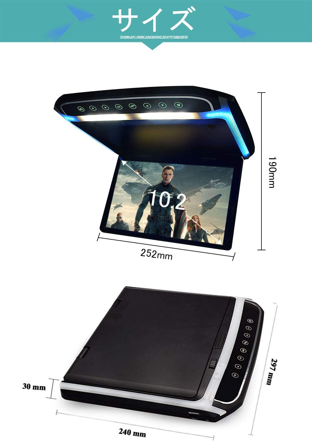 フリップダウンモニター 10.2インチ HDMI 動画再生 超薄型 LEDバックライト液晶