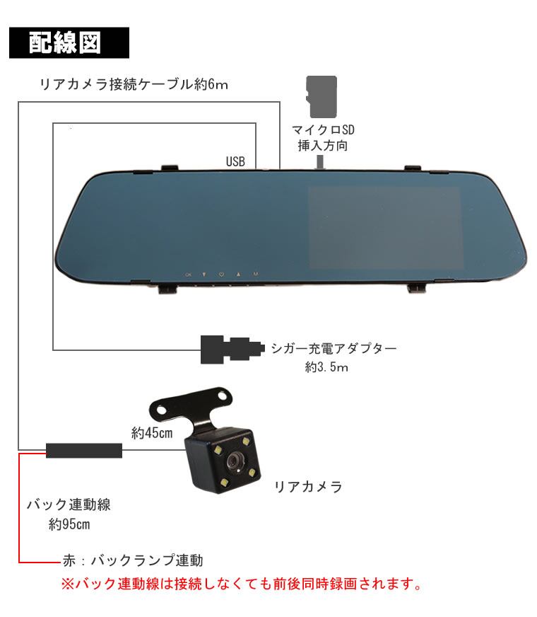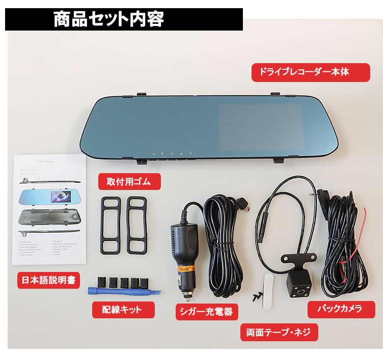 ドライブレコーダー 前後 ミラー型 2カメラ 16GB sdカード 駐車監視 バックカメラ モニターセット フルHD 高画質 広角140度 送料無料