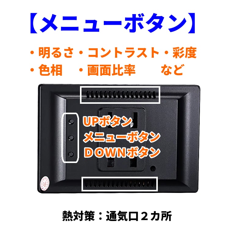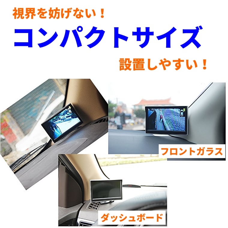 【製品特徴】(1)バック連動機能付き (2)2系統の映像入力 (3)手のひらサイズ (4)モニター裏メニューボタン付き (5)反射防止カバーモニターと一体型 (6)日本語簡易マニュアル (7)一年間保証